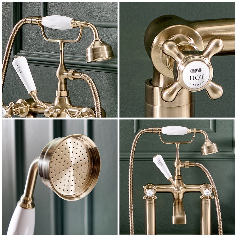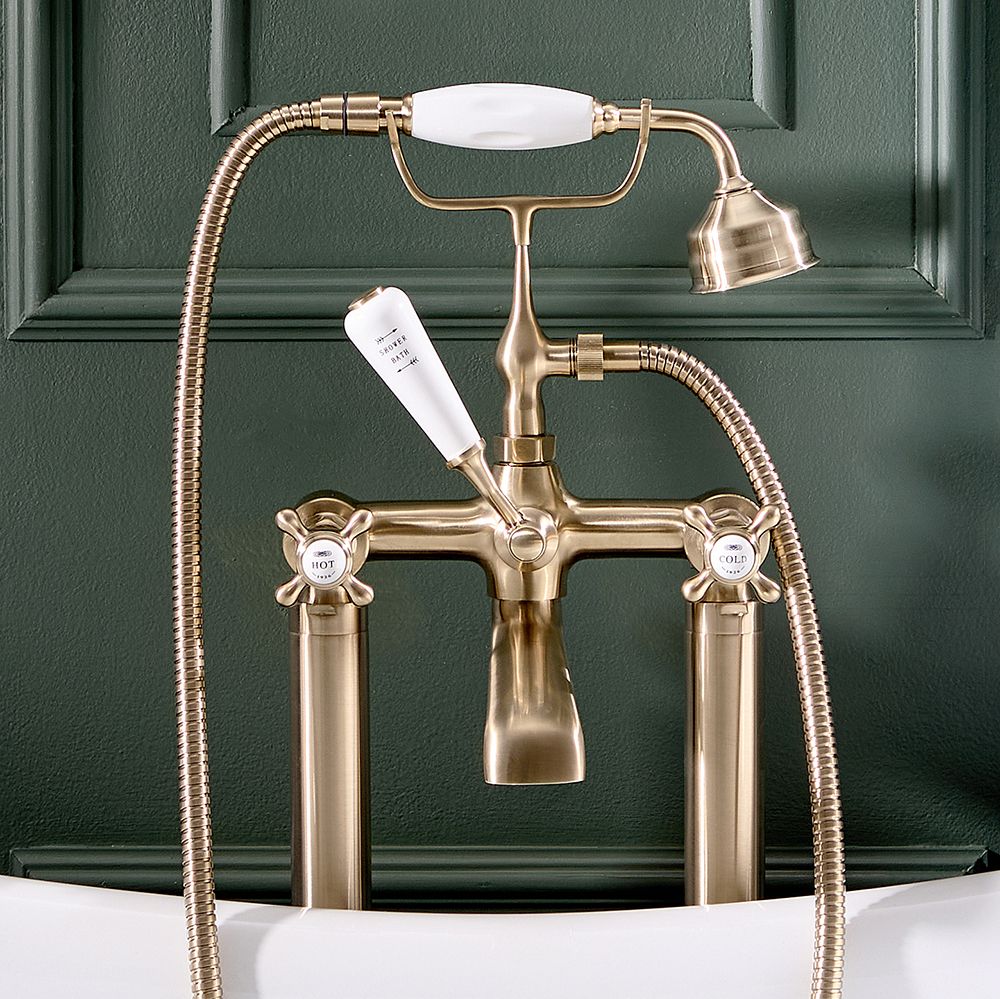 Vrijstaande Badmengkraan met Kruisgrepen en Handdouche Klassiek - Satijn Goud | Elizabeth