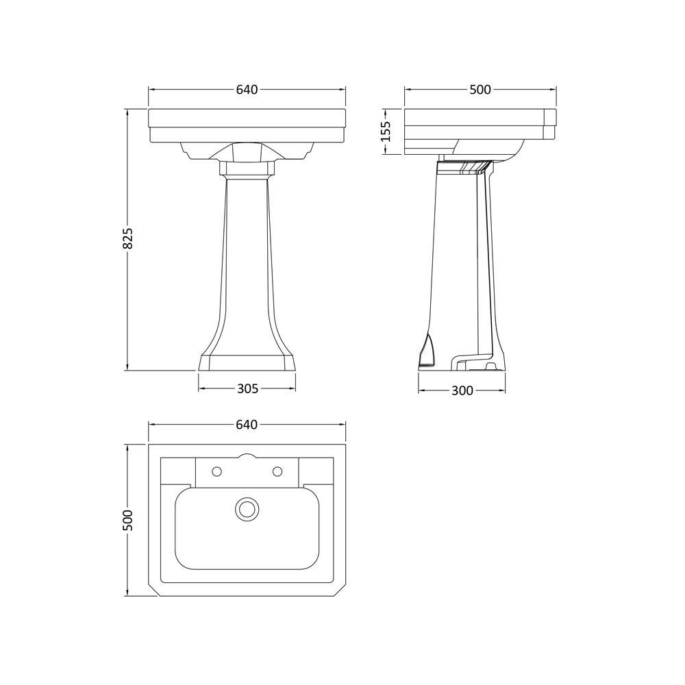 Wastafel met Zuil 64cm met 2 x Kraangaten | Victrion by Hudson Reed