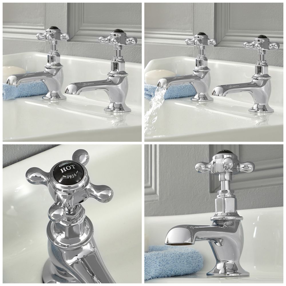 Deze mooi gemaakte wastafelkranen hebben een traditioneel ontwerp en een prachtige slijtvaste chromen en zwarte afwerking die elk badkamerdecor complementeert. Vervaardigd van hoogwaardig massief messing voor een luxe gevoel en langdurige kwaliteit, zijn deze stijlvolle wastafelkranen ideaal voor gebruik met onze klassieke 2-gats wastafels.