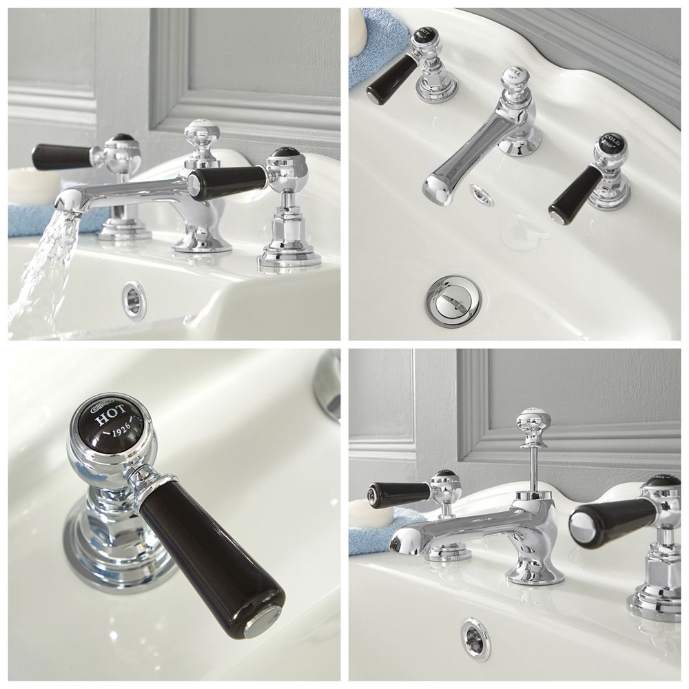 Combineer met één van onze traditionele wastafels met drie kraangaten, en andere chromen en zwarte artikelen uit onze Elizabeth-collectie voor een stijlvolle, perfect gecoördineerde badkamer.