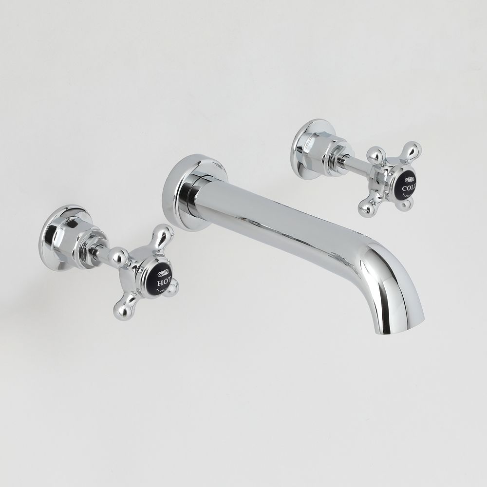 Voeg een klassieke stijl en een vleugje elegantie toe aan uw badkamer met deze Elizabeth muurbevestigde 3-gats wastafelmengkraan.