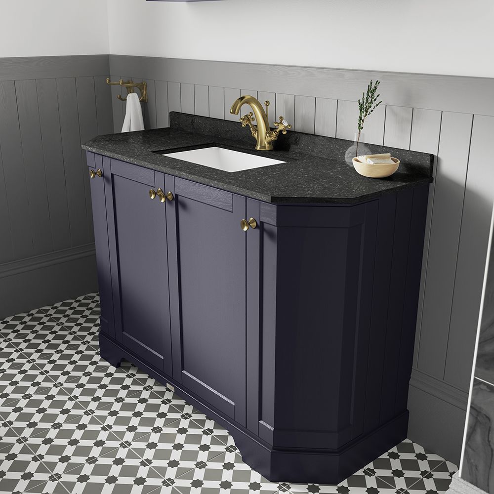 Het Old London 4-deurs wastafelmeubel met zwart marmeren blad en wastafel, creëert een prachtige, klassieke look in uw badkamer.