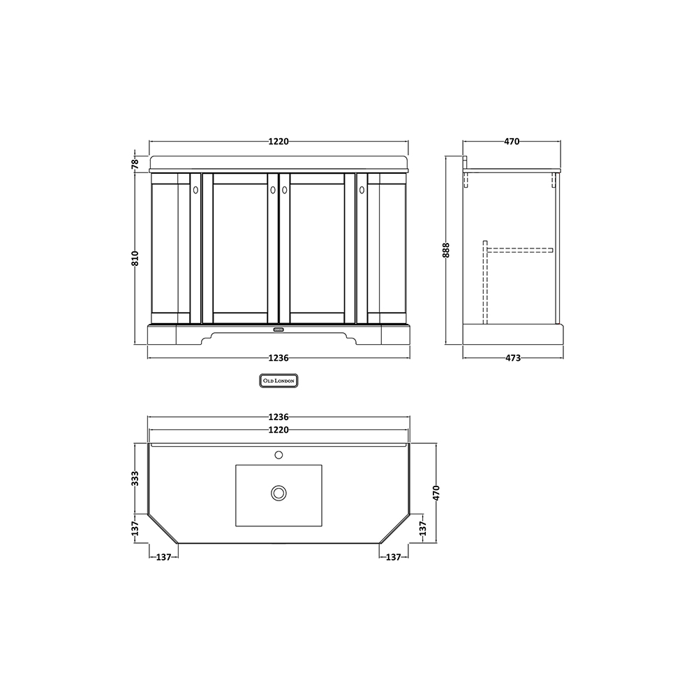 Combineer met de bijpassende Old London-spiegelkast en één van onze traditionele wastafelkranen voor een elegante, klassieke look in uw badkamer.