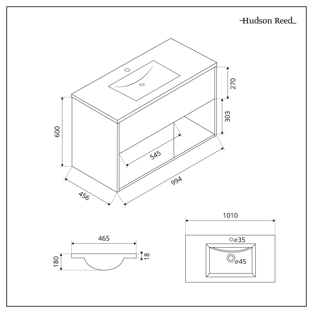 - Afmeting wastafelmeubel: 99,4cm x 45,6cm x 60cm (B x D x H)